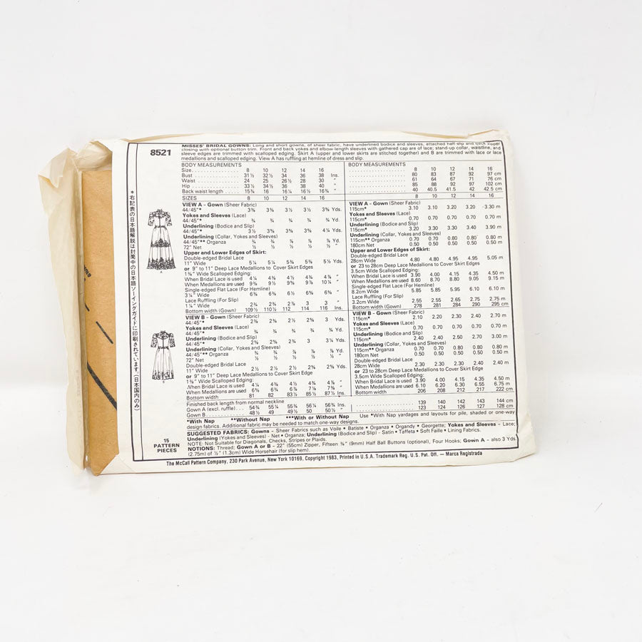 McCall's 1980s Pattern Misses' Bridal Gowns - 8521