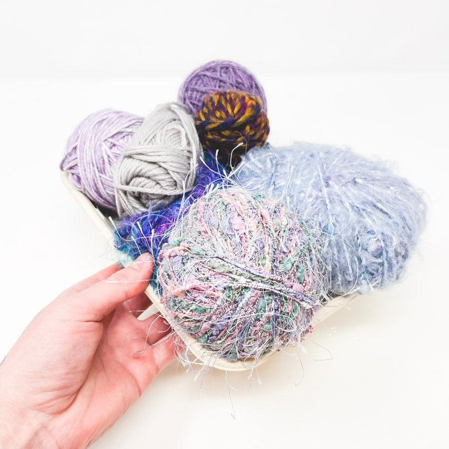 Our Yarn Sushi has a sustainable tray that can be converted into a DIY loom! Instructions, the tray, and the yarn are included. This beginner kit is a great way to re-purpose second-hand yarn remnants and try out a new skill before investing in the tools.