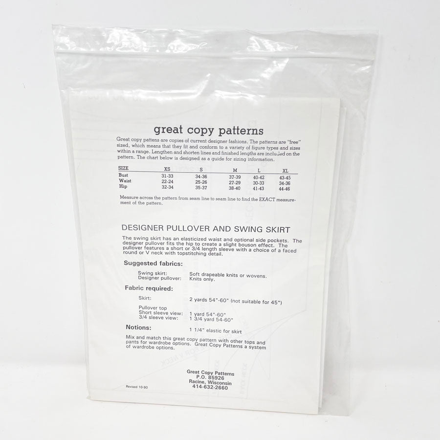 Pull Over & Swing Skirt Great Copy Patterns Sewing Pattern #1200