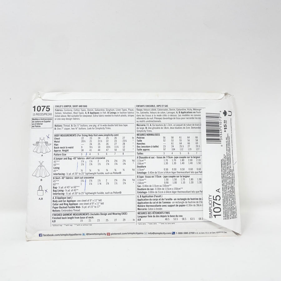 Simplicity 1075 Child's 1950s Style Jumper, Skirt and Bag