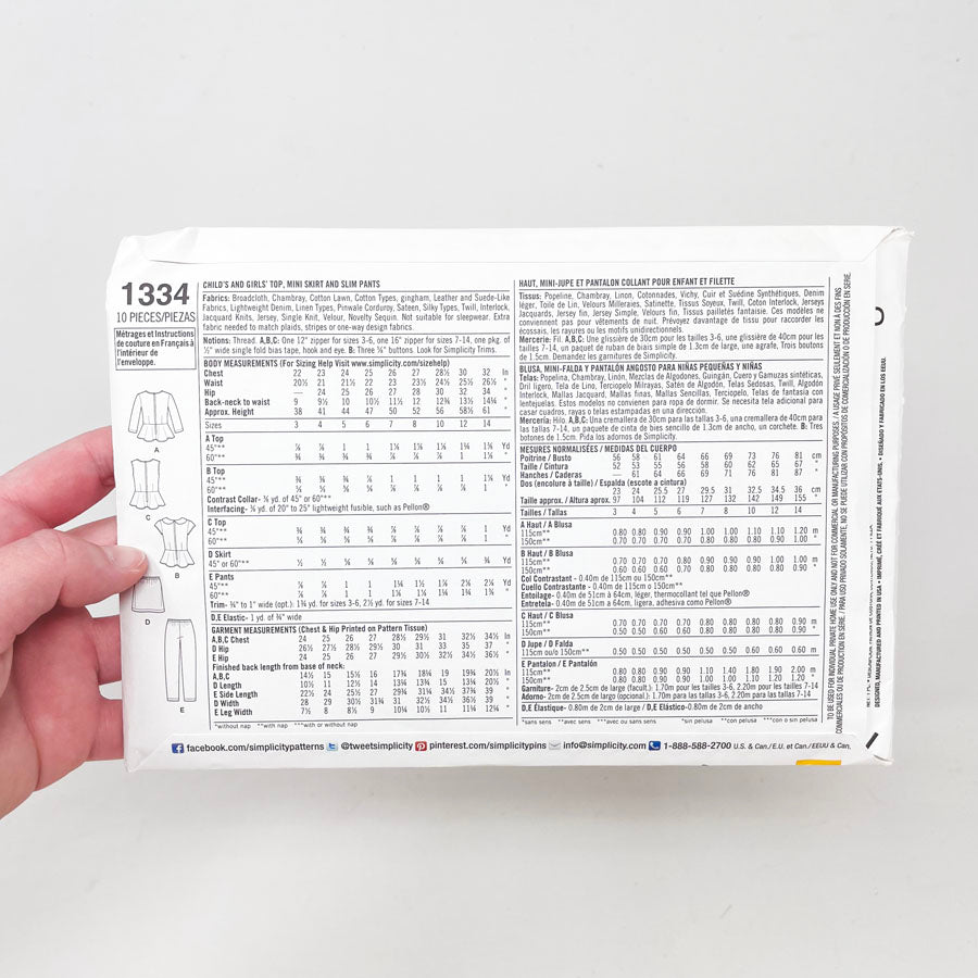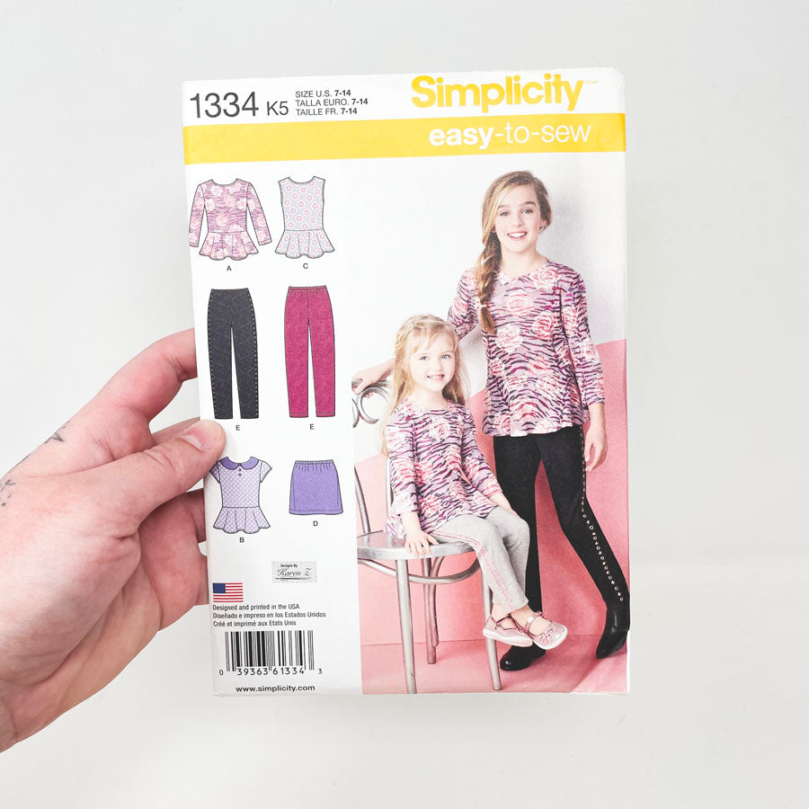 Simplicity 1334 Sewing Pattern - Child's and Girls' Top, Mini Skirt and Slim Pants