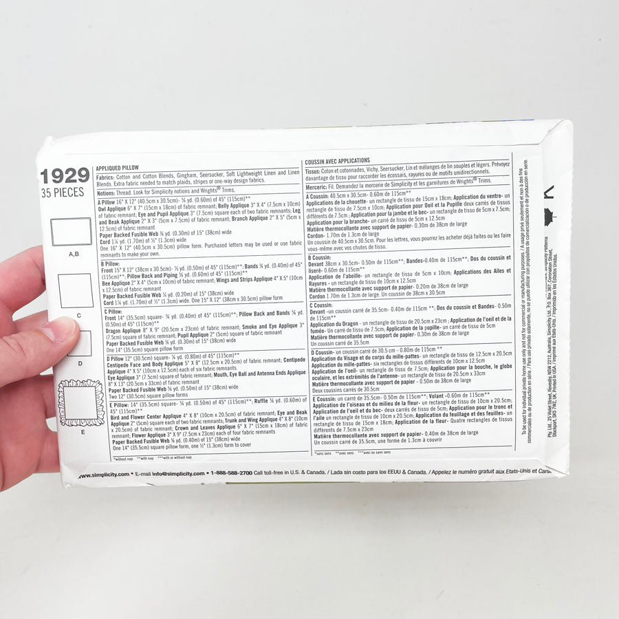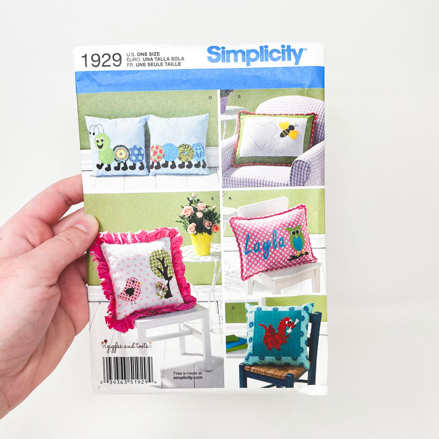 Simplicity 1929 Sewing Pattern - Appliqued Pillow