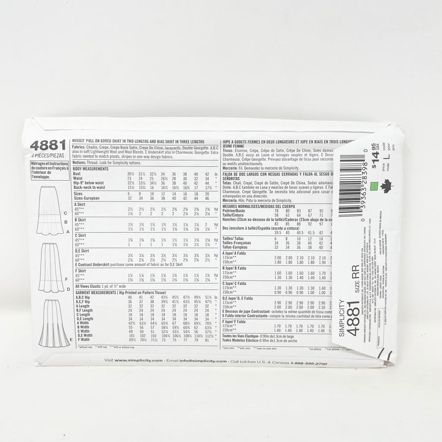 Simplicity 4881 Sewing Pattern - Skirt (14-20) - 2004