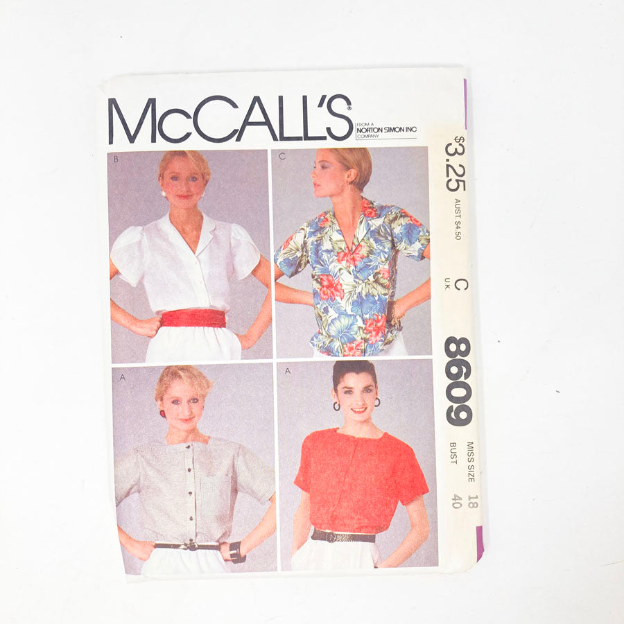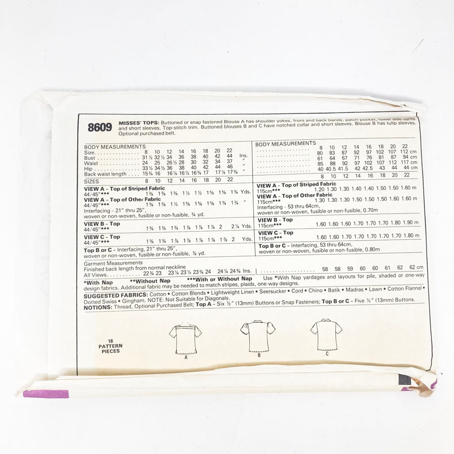 McCall's 8609 Sewing Pattern - Top (18) - 1983