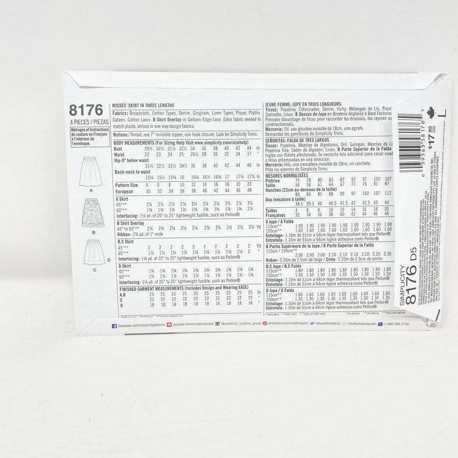 Simplicity 8176 Sewing Pattern - Skirt (4-12) - 2016