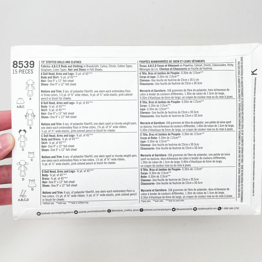 Simplicity 8539 Sewing Pattern - Whimsy 15" Stuffed Dolls and Clothes