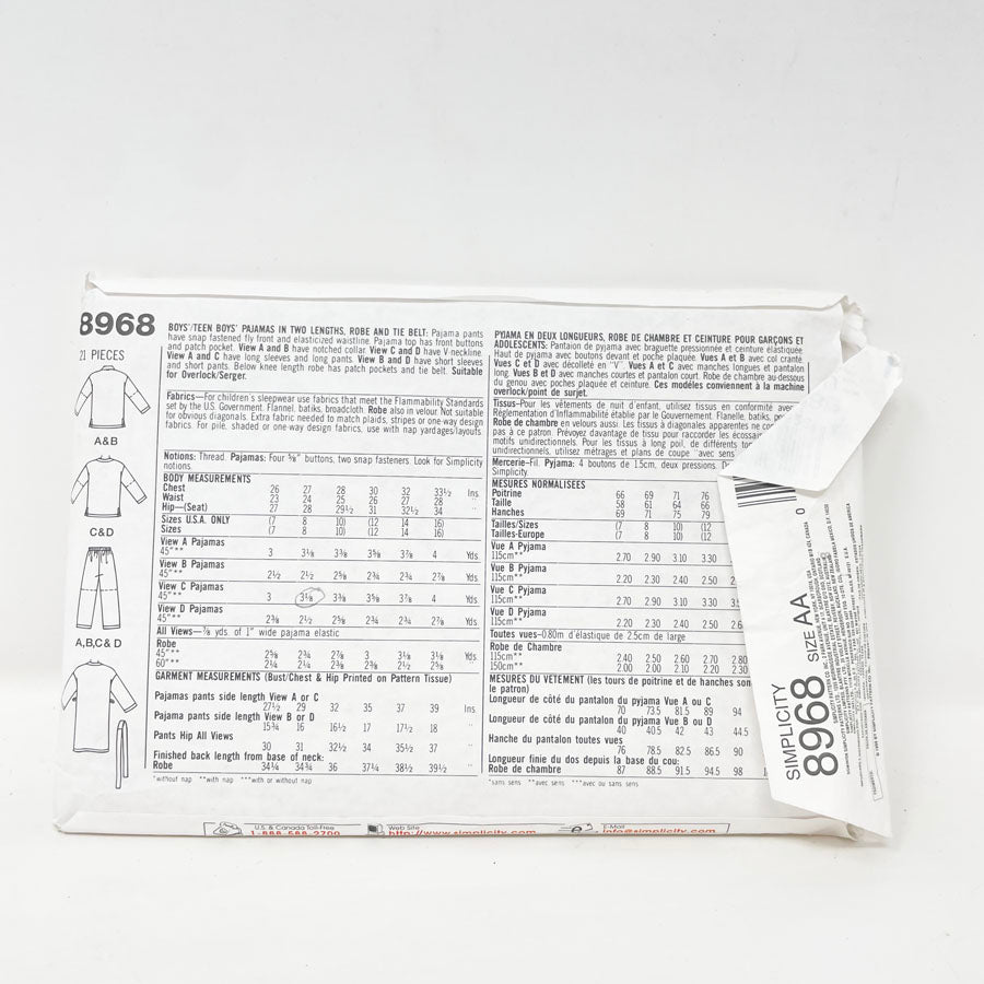 Simplicity 8968 Sewing Pattern - Youth PJs (7-10)