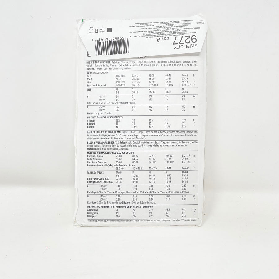 Simplicity 9277 Sewing Pattern - Skirt/Top (XS-XL) - 2000
