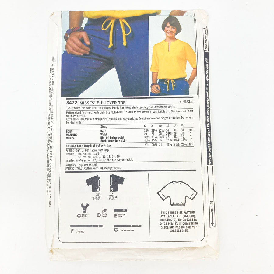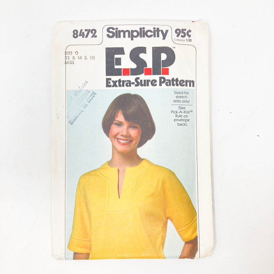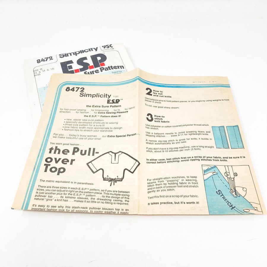 Simplicity E.S.P. 8472 Sewing Pattern - Top (6-16) - 1978