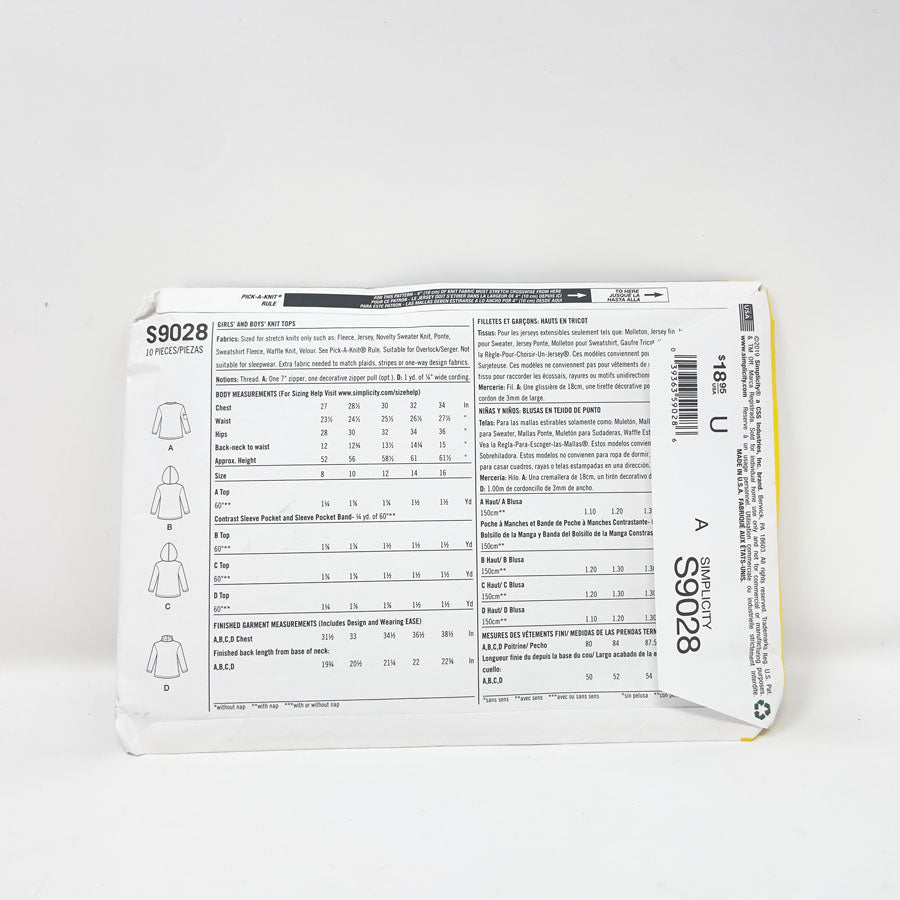 Simplicity S9028 Kids Sweatshirt/Hoodie Pattern