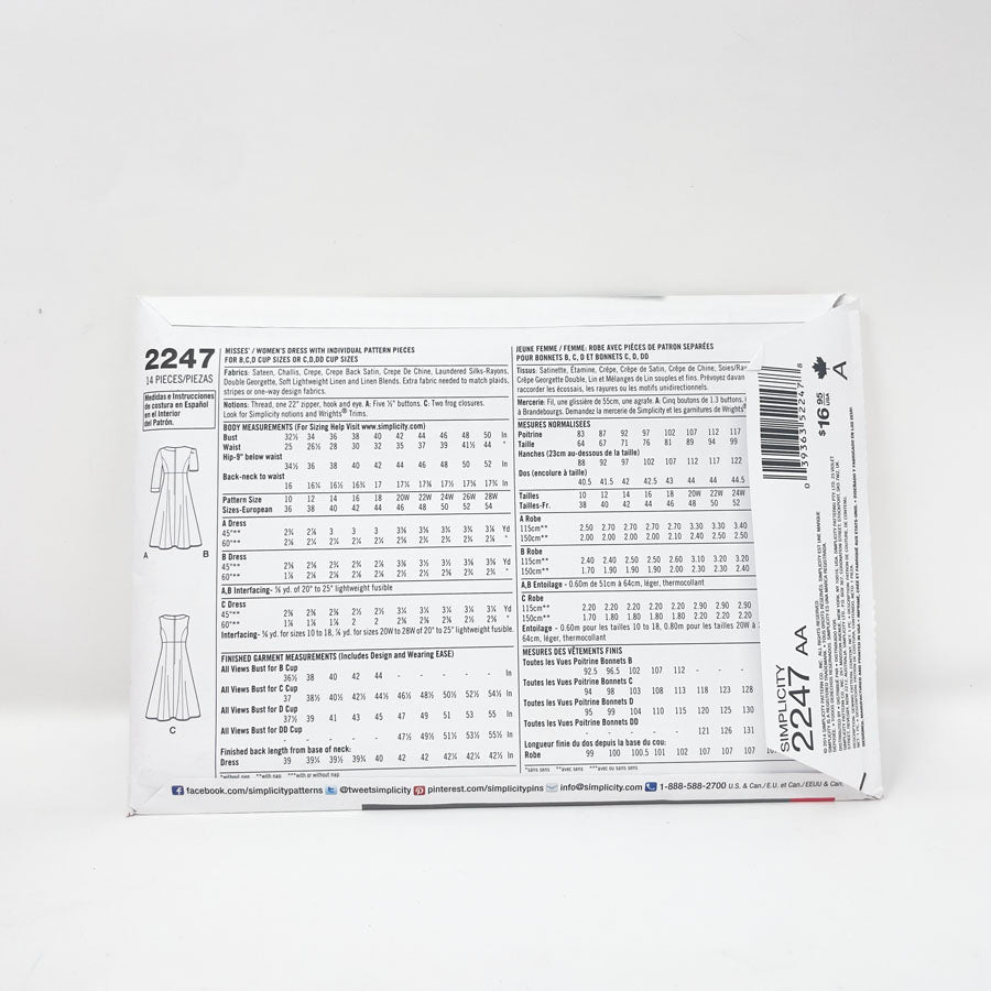 2014 Simplicity Sewing Patterns 2247 - Misses' Dress with Individual Pattern Pieces