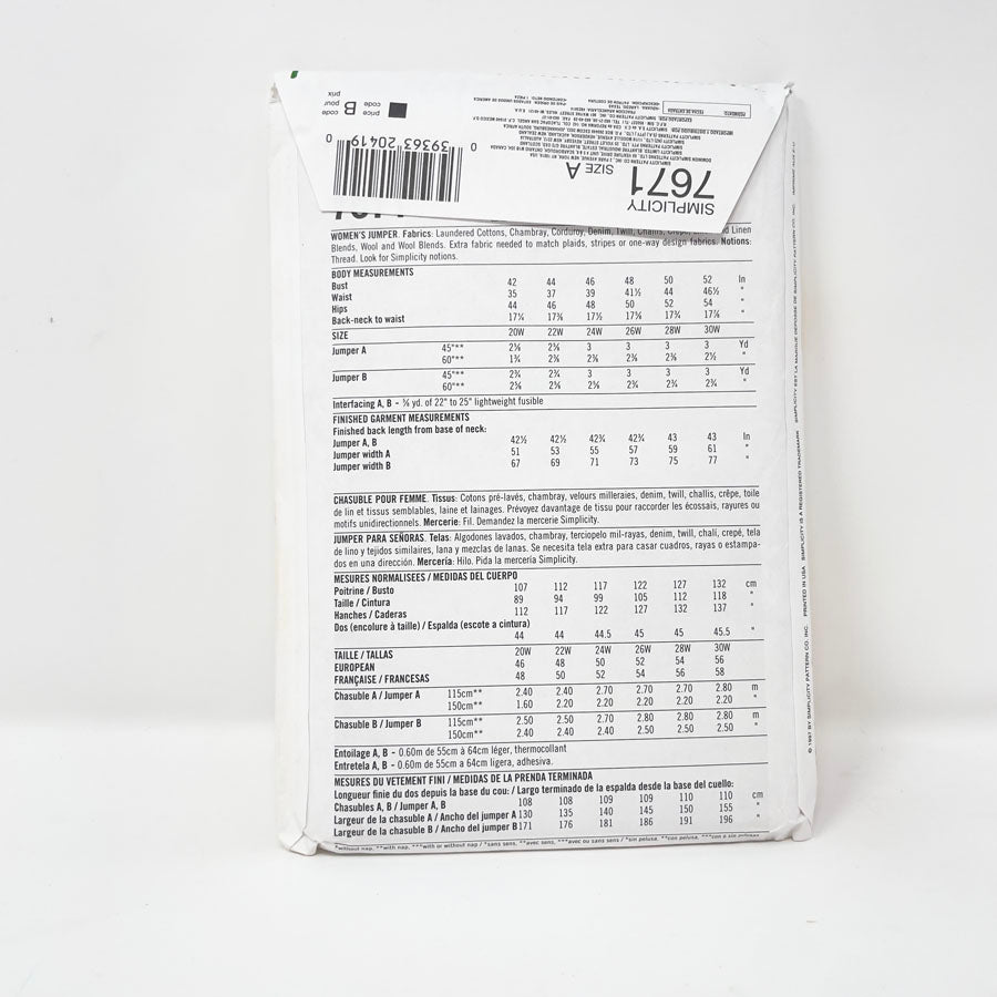 1997 Simplicity Sewing Patterns 7671 - Women's Jumper