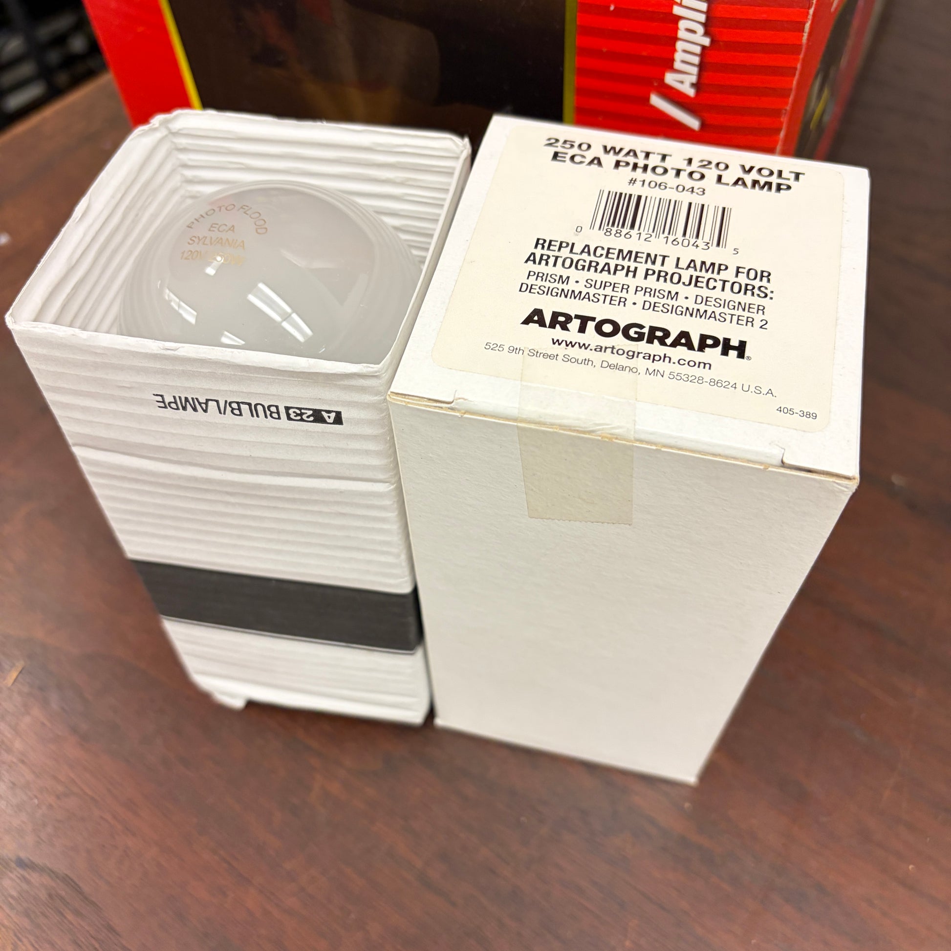 Secondhand. Has been tested and is working. An additional lens and two extra lightbulbs are included.