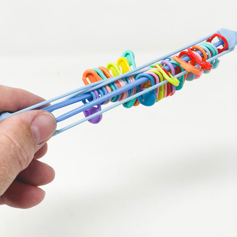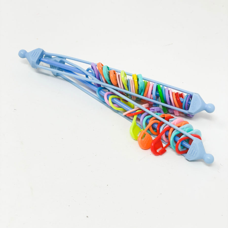 Two Plastic Stitch Savers with Stitch Markers
