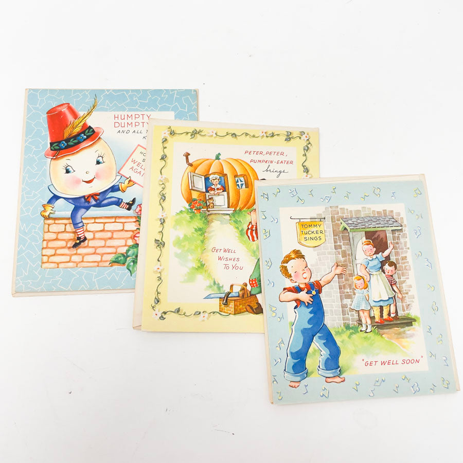 Vintage 1950s Storybook Get Well Cards with Nursery Rhyme Inserts