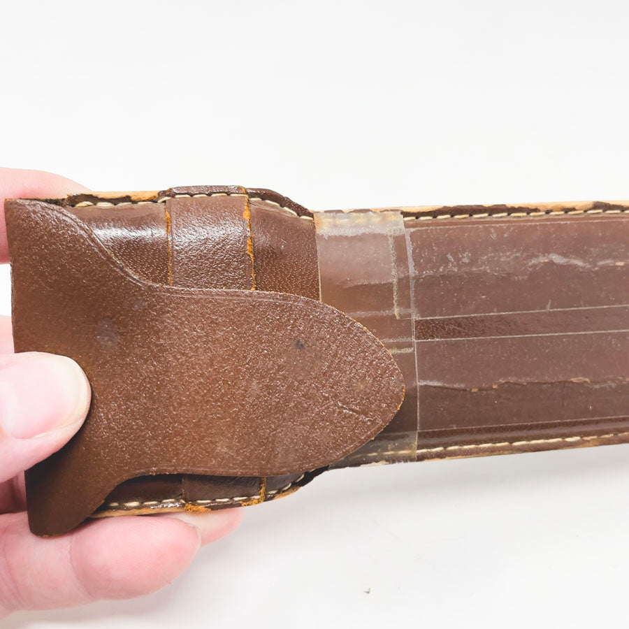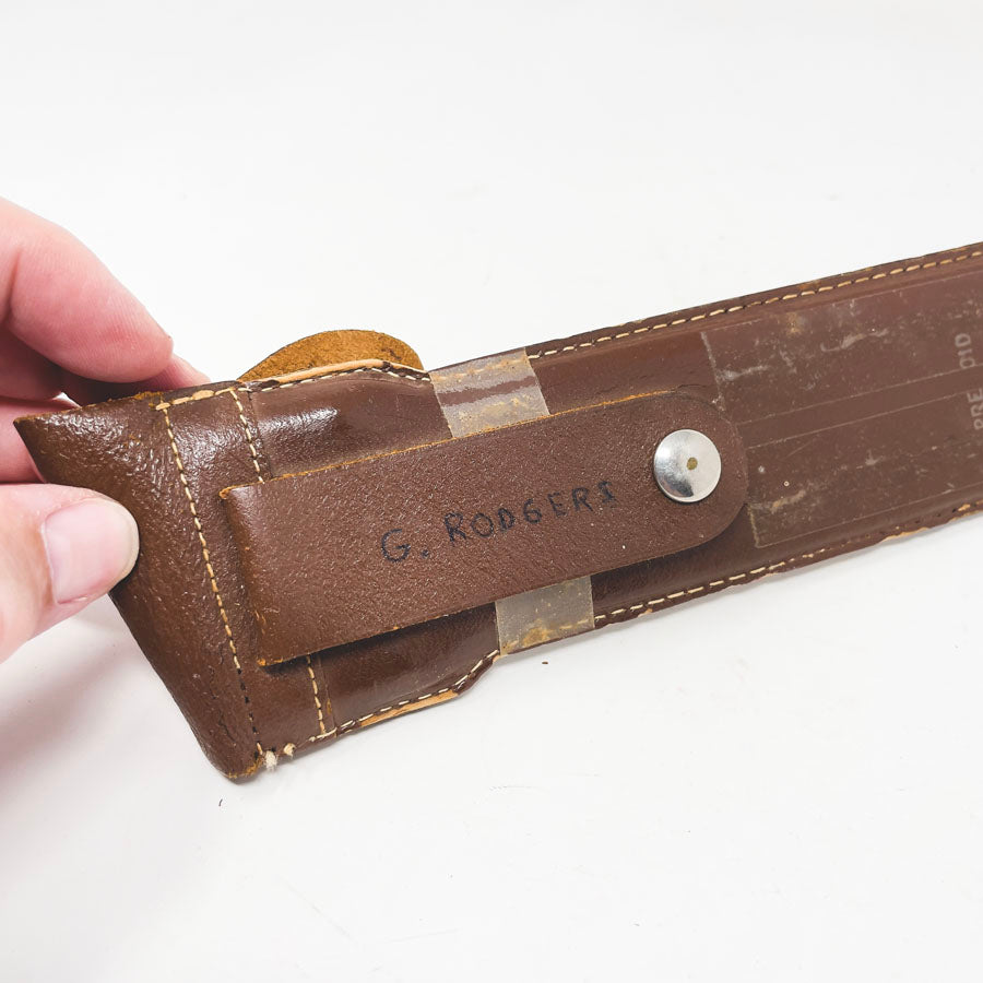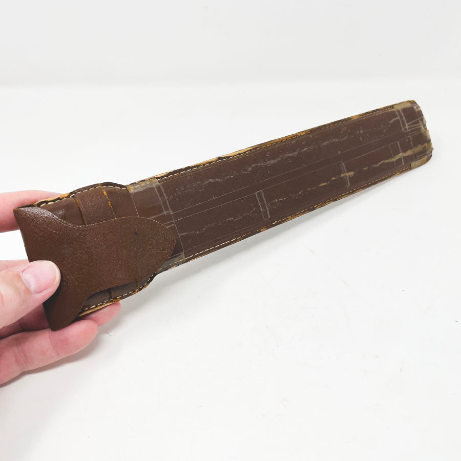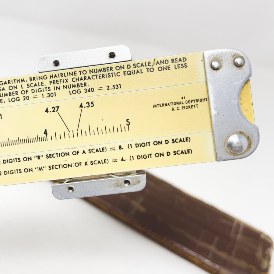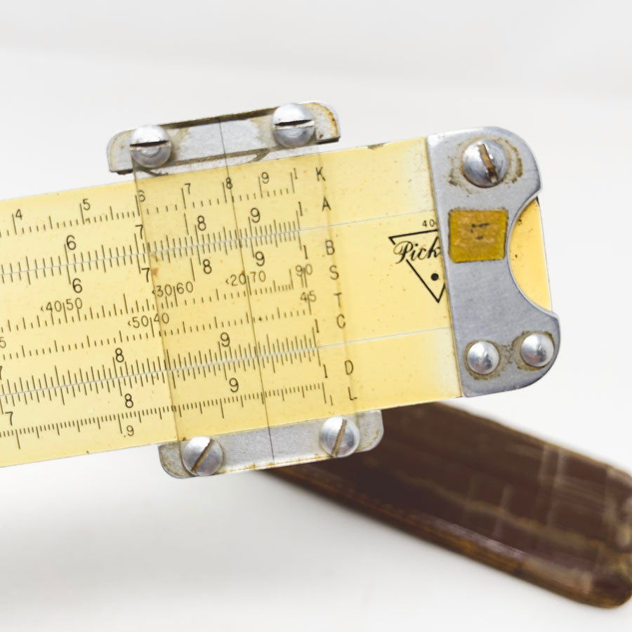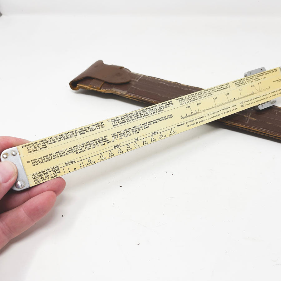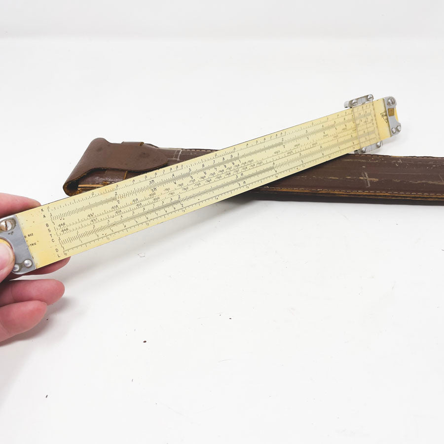 The case is pretty beat up but the slide rule is in good condition. Some discoloration.