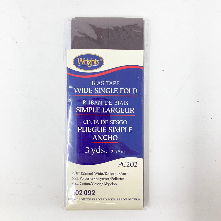 Wrights Wide Single Fold Bias Tape - Seal Brown
